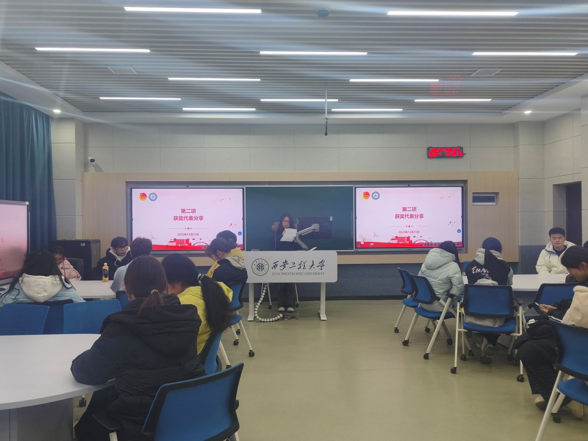活动开始,西纺青年理论学习社副社长李宜洲简要介绍了本次讨论会的流程与意义,强调会议旨在通过优秀作品展示与深度交流,激发学子对纺织行业发展的思考,凝聚青春奋进力量。随后,获奖作品展示环节精彩开启。现场通过PPT投影呈现优秀作品的核心片段,纺织情怀跃然纸上,展示过程中,主持人还对作品的亮点进行点评,剖析其如何将纺织行业智能化、绿色化转型的时代背景融入创作,为大家提供了专业创作的新思路。