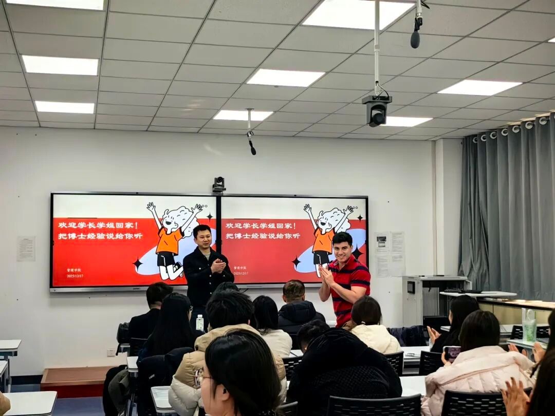 ALEXIS,首先分享了自己在德国和来中国后的生活,交友故事。然后再分享自己在德国的学习经历,详细解读了海外学习时间规划、院校与导师筛选、语言能力准备、研究计划撰写等关键环节。在跨文化学术实践环节,他分享了海外读博的学习模式与生活适应技巧。他还介绍了海外学术会议参与、国际合作项目申请等拓展学术视野的途径,建议同学们提升跨文化沟通能力,以开放包容的心态应对海外学术与生活中的差异,充分利用海外优质教育资源实现自身成长。