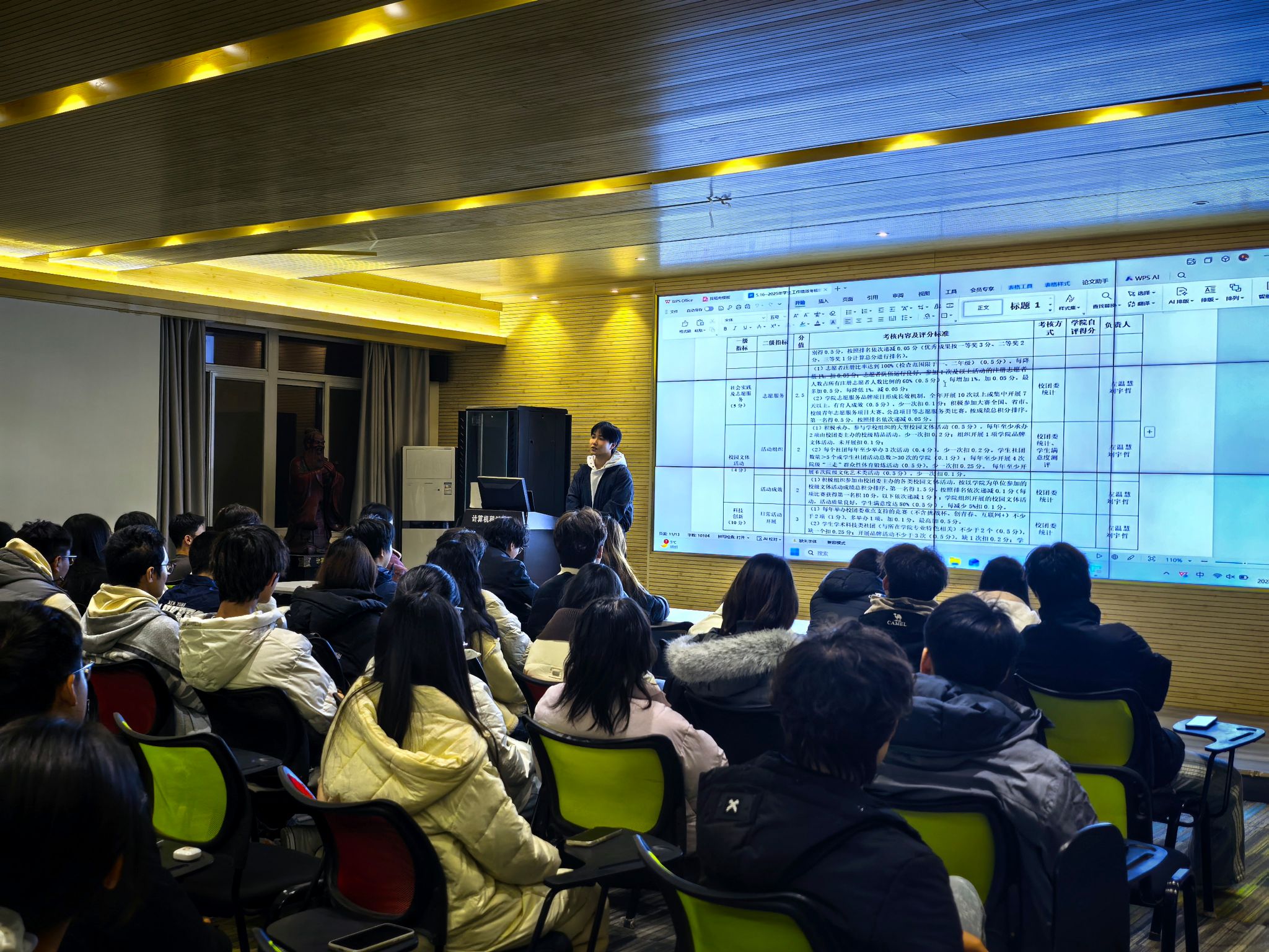 随后,学院团委书记左温慧作总结讲话。她对学生会2025年的工作成效给予充分肯定,认为全体成员应该立足服务同学宗旨,在文体活动创新、多元服务落地等方面付出了扎实努力,有效增强了学院学生的凝聚力与归属感。针对汇报中提出的不足,左温慧提出要求:一要精准对接需求与考核导向,在活动策划、宣传与总结环节下足功夫,确保工作靶向性;二要强化活动品牌化建设,做好特色活动的长期规划与传承,提升活动影响力;三要健全部门协同机制,打破沟通壁垒,实现资源高效整合;四要拓展服务维度与深度,聚焦同学学业发展、职业规划等个性化需求,优化帮扶措施,让服务更暖心、更精准。她鼓励全体学生会成员继续秉持责任担当,以更饱满的热情投入到新一年工作中。