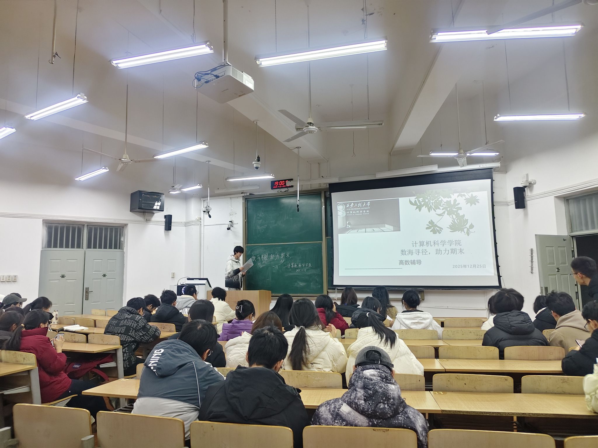 期末备考进入冲刺阶段,高等数学作为理工科专业的核心基础课程,是不少同学的复习难点。为切实解决学子复习困惑,帮助大家精准把握复习重点、提升解题能力。计算机科学学院于2025年12月25日在B-335举办“数海寻径,助力期末”主题高数复习分享会。学院相关辅导员、学业指导老师及百余名学生代表参加了本次活动,分享会由学院学生会学习部承办,特邀学院高数成绩优异、曾获校级学业奖学金的汪于程、李奥康两位同学担任主讲人。