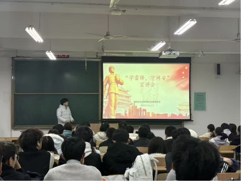 为传承雷锋精神,筑牢校园网络安全防线,3月12日晚上,网络安全学院青年志愿者协会举办“学雷锋,守网安”主题宣讲会,学习雷锋精神和雷锋式的责任与担当,并为学生普及网络反诈知识,提升识骗防骗能力。