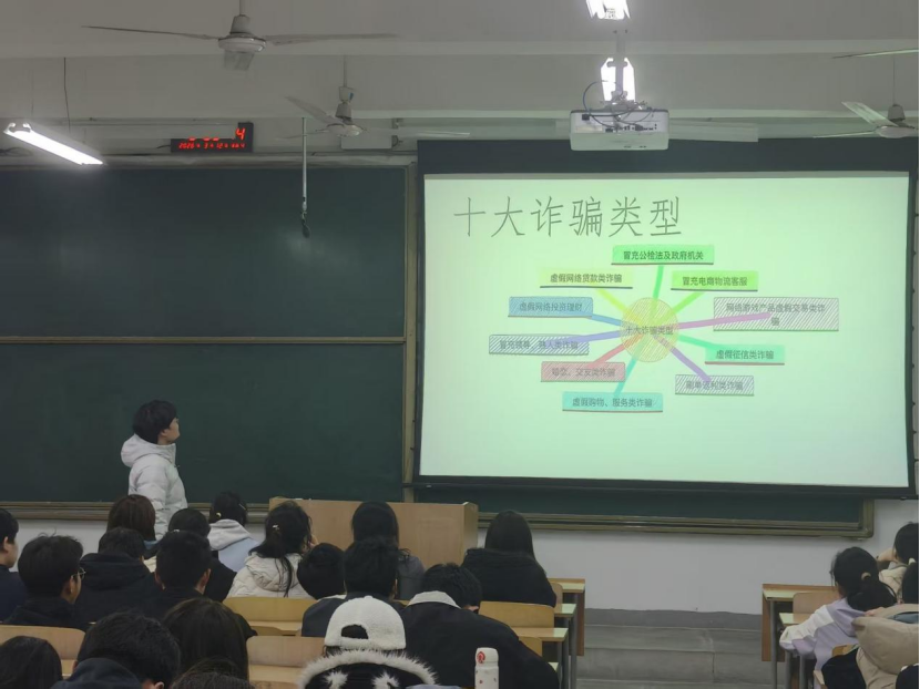 同时,宣讲会也聚焦当下网络诈骗新形势,为同学们系统普及反诈知识。宣讲中讲到,AI技术的滥用催生了新型网络诈骗威胁,并结合十大诈骗类型,分享了校园内游戏账号交易、冒充同学转账、冒充电商客服诱导操作等真实被骗案例。最后,重点讲解了国家反诈中心提醒的“八个凡是”反诈准则,普及安装国家反诈中心APP、通过“一证通查2.0”查询名下账户等实操防骗方法,以提升同学们的识骗、防骗、拒骗能力。