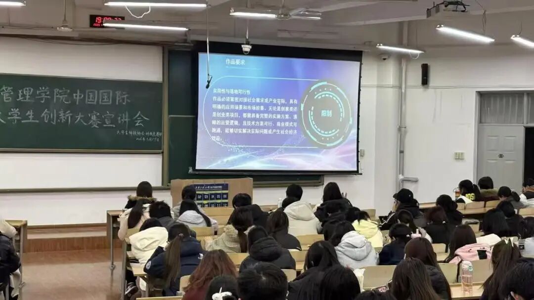 3月19日,管理学院在教学楼B-237教室举办中国国际大学生创新大赛宣讲会。学院各年级学生100余名参与其中,共同解锁赛事核心要点,为参赛备赛筑牢基础。