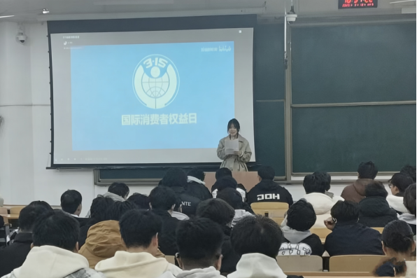 活动伊始,主持人围绕国际消费者权益日核心常识、消费维权实用技能展开分享,生动剖析消费陷阱的常见形式与危害。随后,他选取了《消费者权益保护法》等相关法规,结合与学生日常生活紧密相关的内容细致讲解,帮助大家明确维权的法律依据与有效途径。