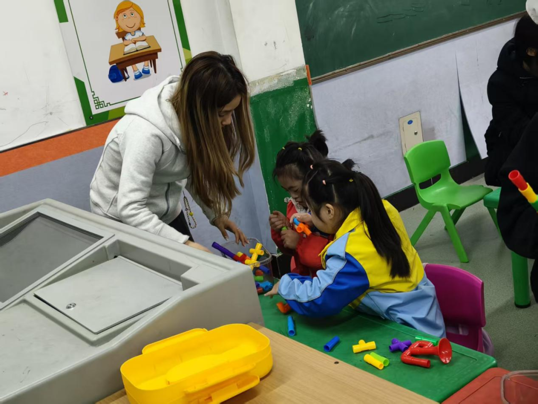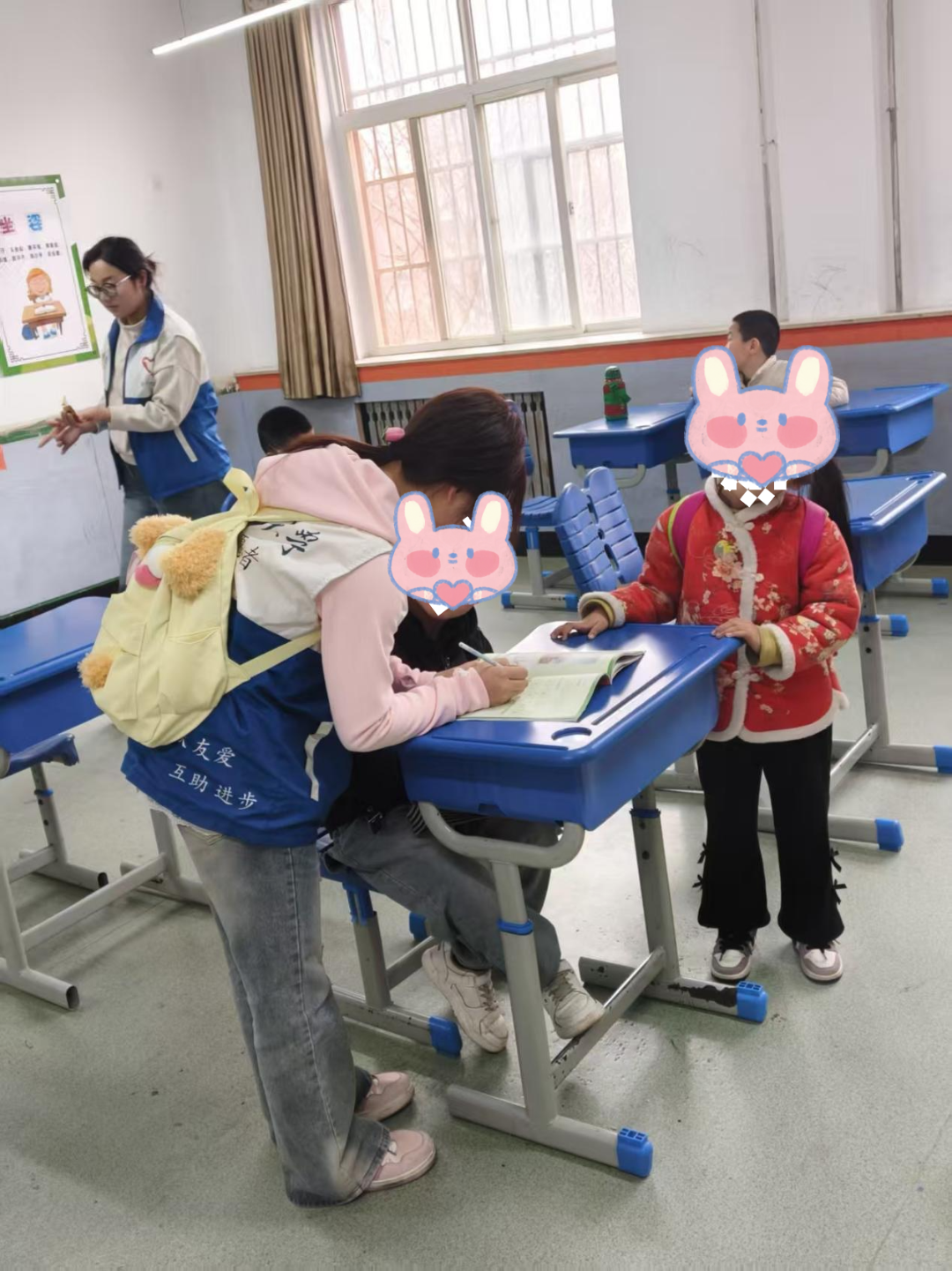 抵达后完成物资分发,温情瞬间拉满。特色课堂上,志愿者结合孩子认知规律,耐心示范握笔、写字与绘画,一对一指导陪伴。孩子们专注练习、创意作画,欢笑声与笔墨声交织,暖意融融。