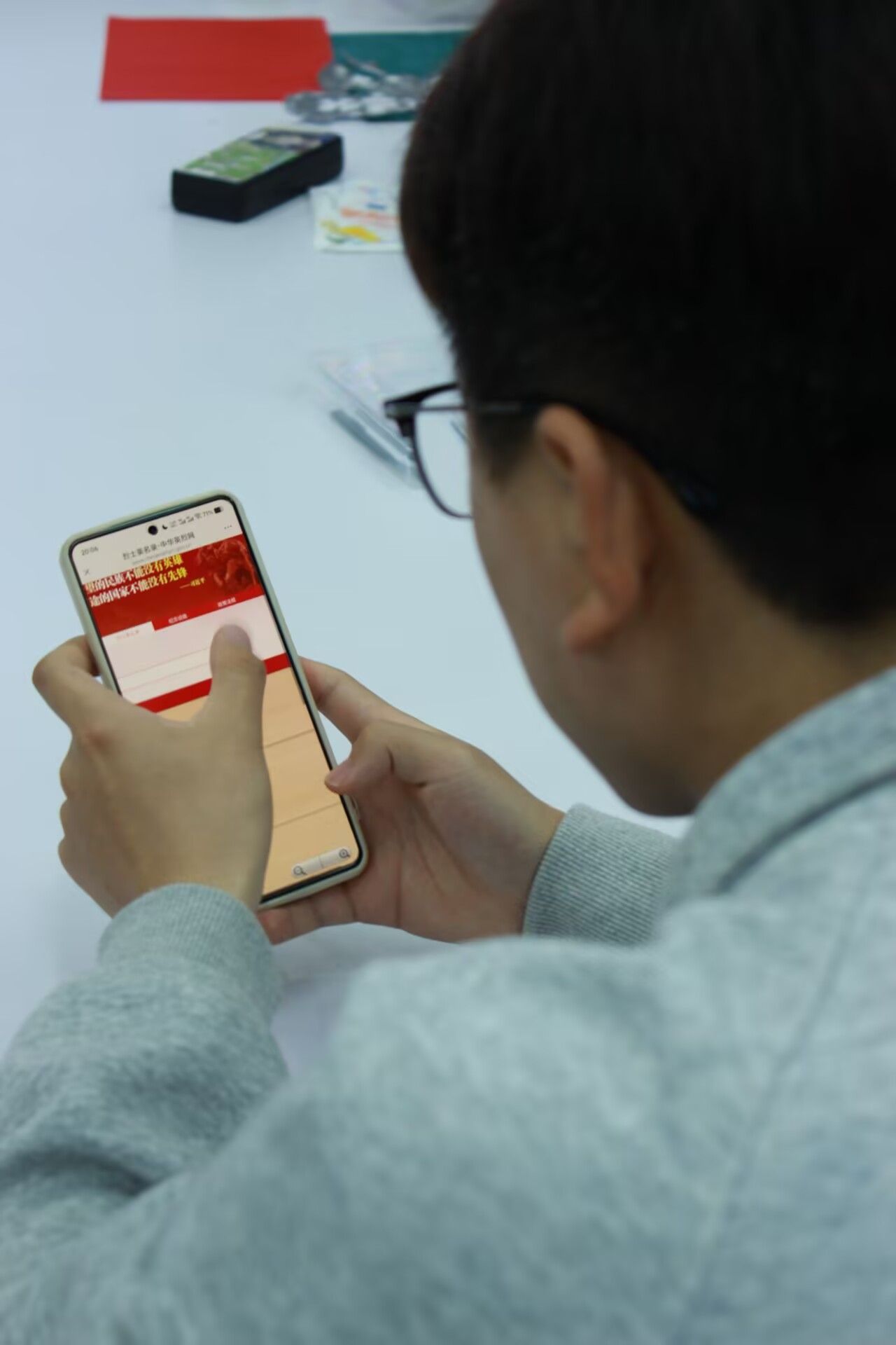 随后进入“云端献花悼英魂”环节。全体同学扫描二维码进入“烈士英名录”,按地区或姓名查找烈士,进入纪念馆通过“献花”“敬献花圈”“鞠躬”完成线上清明祭扫,并在留言区写下想说的话。一朵朵虚拟鲜花汇聚成对英烈无尽的敬仰。