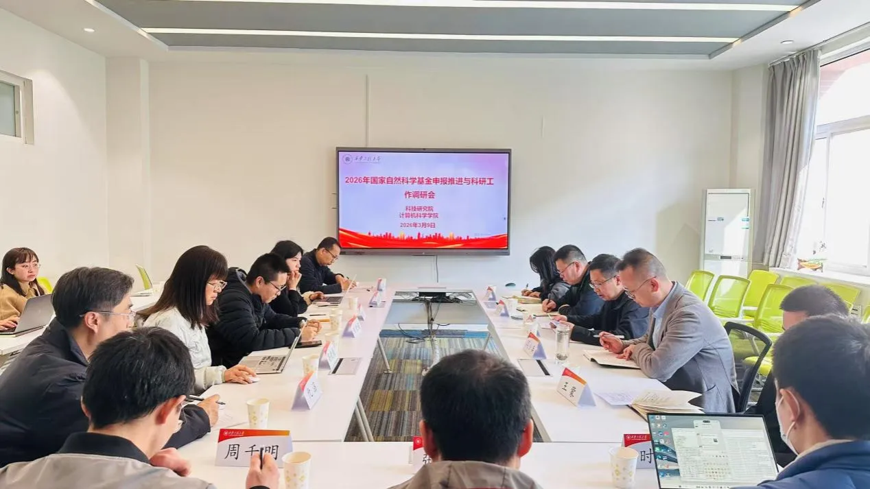 3月9日下午,科技研究院一行莅临计算机科学学院,就2026年国家自然科学基金申报推进工作及科研管理办法开展专题调研。科技研究院副院长张守京、综合科科长界璐,计算机科学学院副院长张凯兵、副书记闫小兵,各系主任及青年教师骨干代表参加会议,会议由张凯兵主持。