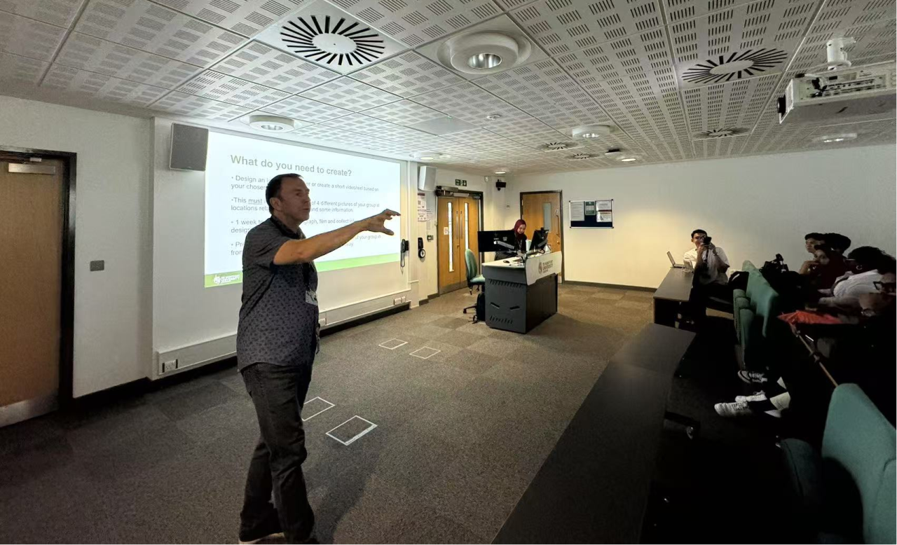 上午,学子们在遗产大楼(Heritage House)开启课程学习。“GLOBAL FOOTPRINTS”碳素养项目中,老师通过案例解析可持续发展理念,讲解“碳足迹”测算与生态保护实践知识,随后的分组答题比赛加深了学子们对知识的理解。在“Project setting”课程里,Mike老师引导学子们随机组成4-5人的小组,围绕“自选主题调研”展开思路,并详细解读了作业要求、调研方法及上传流程。午餐时间,学子们前往市中心品尝英式传统早餐,初步体验当地饮食文化。