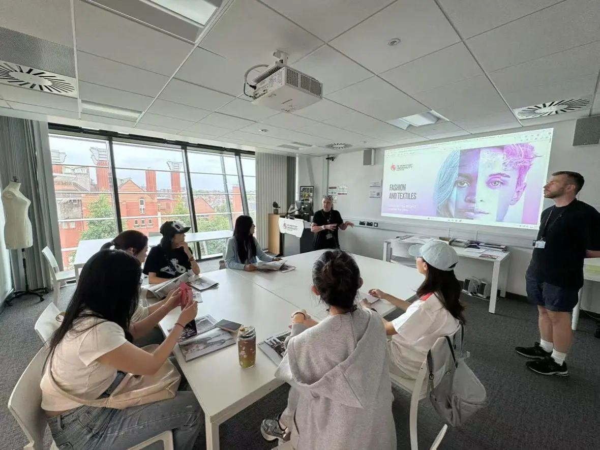 下午,学子们参观了Vijay Patel Building,了解了Fashion Communication专业的时尚摄影教室,以及工作室里的各种针织机、缝纫机、数码印花设备、染坊等工坊设施,老师还介绍了校园历史与艺术专业相关情况。德蒙福特大学特别为我校学子开设了一小时的专业对口CLO 3D课程,由时装系系主任亲自授课。课程聚焦服装数字化设计的核心应用场景,系主任结合自身深耕行业的经验与前沿案例,系统讲解了CLO 3D软件在虚拟打版、面料质感模拟、动态款式效果预览等关键环节的技术逻辑与操作规范。针对我校学子的专业背景,授课中特别强化了“数字化工具与设计创意结合”的实操演示,包括如何通过参数调整优化服装结构、如何利用虚拟试衣功能提前规避生产误差等实用技巧,并现场解答了学子们关于软件操作难点与行业应用趋势的提问,为后续的设计实践提供了精准的专业指导。CLO 3D教学课程结束后,学子们参观了内衣设计工作室、鞋履工艺室及小型画展,接触到服装设计的多元分支,感受年轻创作者的创意理念。