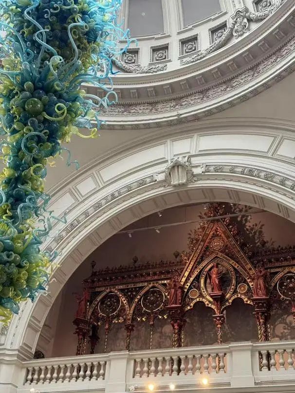 旅程最后一站,学子们来到伦敦维多利亚与阿尔伯特博物馆(V&A)。该博物馆由阿尔伯特亲王用第一届世博会收益建成,空间布局巧妙。在珠宝馆,三千余件从中世纪到现代的藏品吸引了学子们的目光,包括哥特式宗教信物、新艺术运动藤蔓纹样饰品、维多利亚女王的蓝宝石婚冠、文艺复兴时期的珐琅吊坠、19世纪法国宫廷的钻石冠冕、爱德华时期的海蓝宝戒指等。