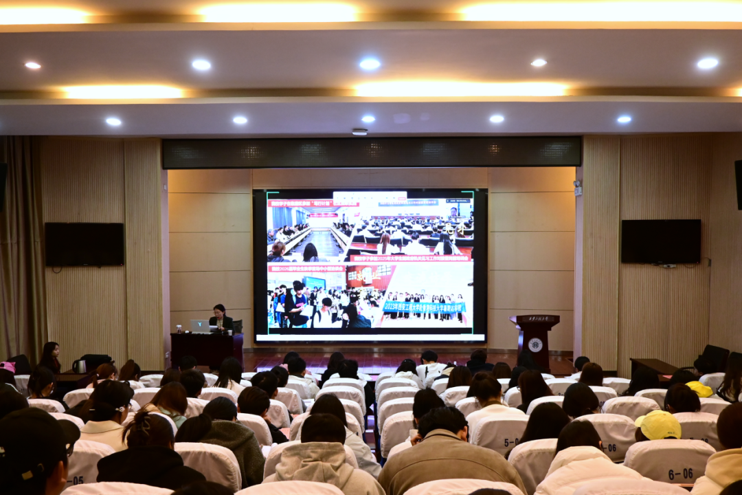 校团委兼职副书记、服装学院团委书记马薏雯以“国内发展大局+国际复杂格局”为视角,结合大学生社会实践,系统解读党的创新理论及习近平总书记关于青年工作的重要思想。