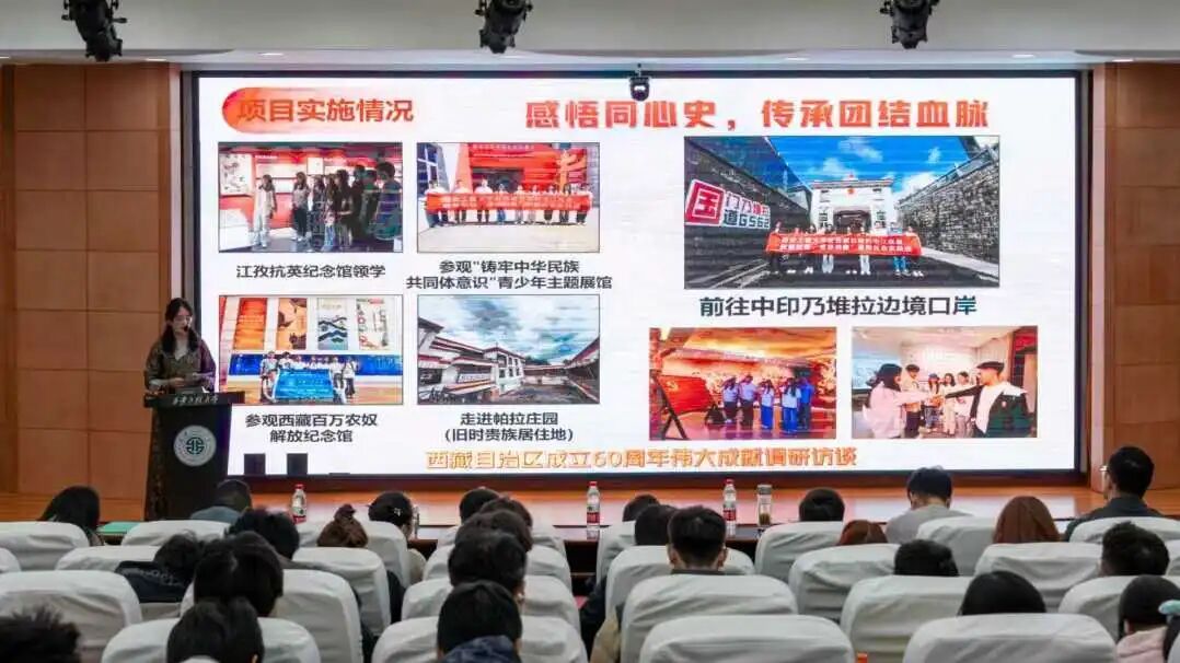 计算机学院赴西藏日喀则市江孜县“数智赋能,普语润藏”暑期社会实践队的白玛央宗讲述了他们团队赴西藏江孜,开展爱国主义教育、非遗传承、数智培训及国家通用语言文字普及等活动,与当地干部群众携手,共同铸牢中华民族共同体意识,发出“坚定不移跟党走”的时代强音;马克思主义学院赴安徽“乡里皖家,青年筑和兴乡”暑期社会实践团韩一冉介绍了他们团队重点关注乡村治理难题,围绕乡村矛盾纠纷调解、农村集体经济发展等关键议题,前往安徽黄山、合肥等地开展座谈交流与实地调研,为提升乡村治理效能提供了青年视角与解决方案。