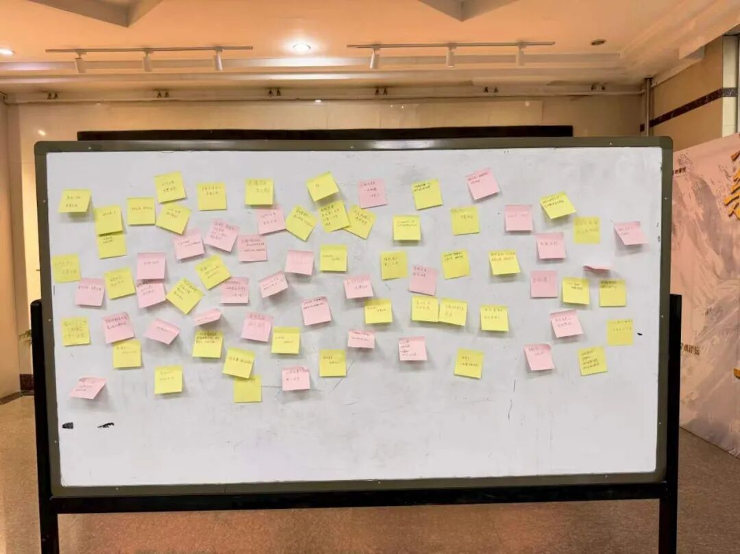 笔墨寄哀思,指尖传文脉。本次活动的核心环节,以绿色文明的形式,为大家搭建了情感寄托与创意表达的平台。在创意寄思环节,大家拿起笔,在便利贴上写下对革命先烈的崇高敬意、对先人的深切追思,或是对生命与春日的真挚感悟,一笔一划皆是真情流露。写满心意的便利贴被一一贴在“寄思墙”上,以绿色环保的形式替代传统祭祀,既保留了追思怀远的仪式感,也践行了文明祭祀的新风尚。