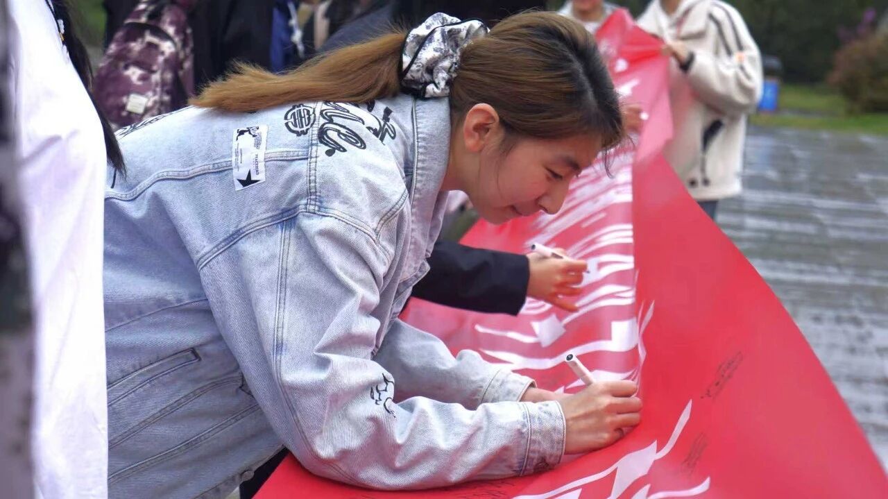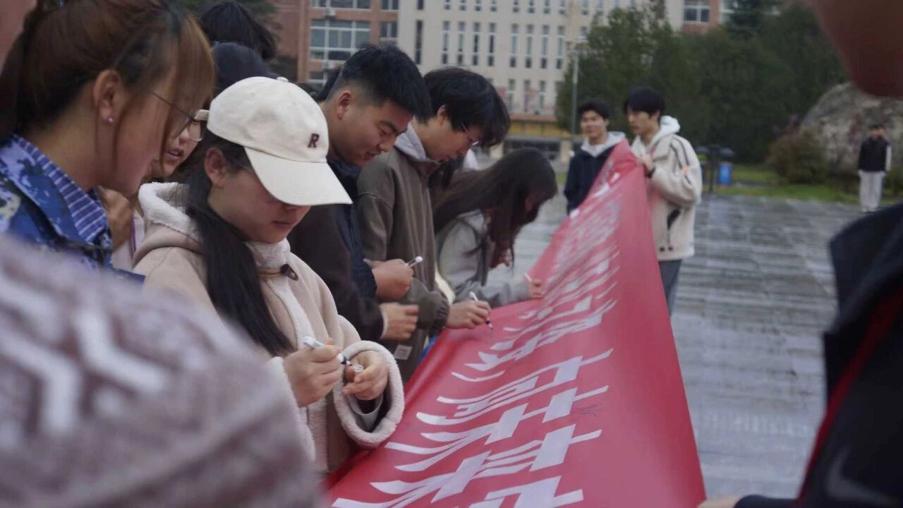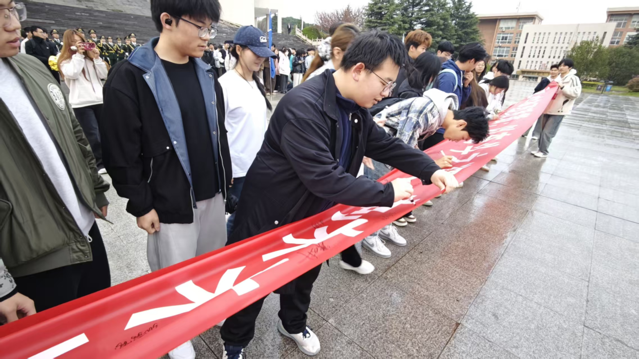 仪式尾声,师生们有序上前,在横幅上郑重签名,将崇敬与期许定格,凝聚起奋进新征程的青春力量。