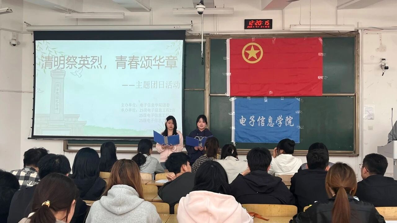 清明将至,电子信息学院于4月3日开展了“清明祭英烈,青春颂华章”主题团日活动。本次活动由学院团委主办,旨在缅怀革命先烈、传承红色基因,引导青年学子追思英烈事迹、感悟崇高品格,将爱国情怀化作奋进动力,以青春之姿扛起新时代青年的使命担当。