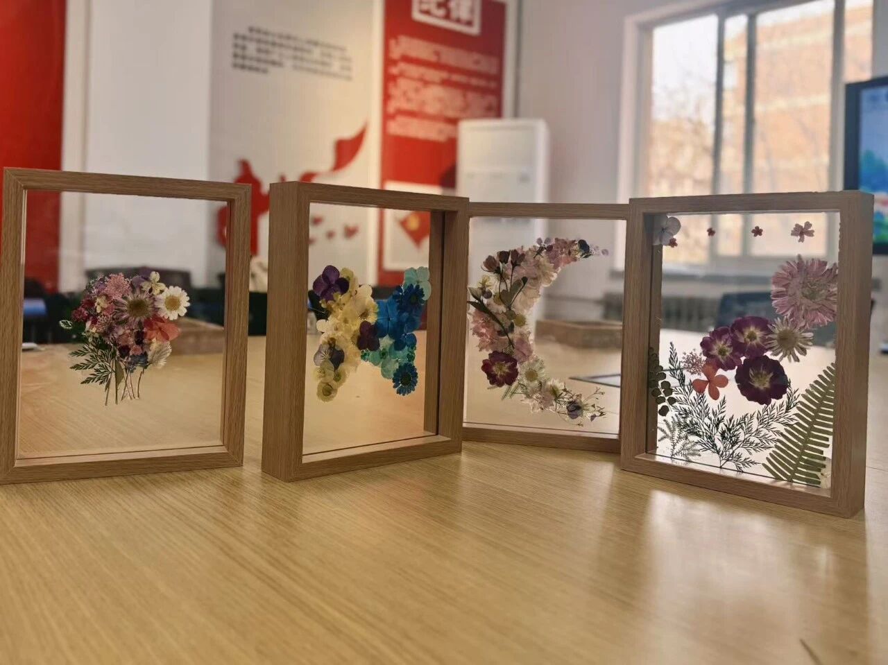 活动现场,同学们在工作人员指导下,精心挑选代表思念与敬意的干花材料,以巧手构图、细心粘贴,将一朵朵压花定格于相框之中。春日的繁花在指尖绽放,英烈的精神在心间流淌。同学们一边制作,一边交流着对清明文化的理解和对革命先辈的追思。每一件压花作品,既是对春天生机的礼赞,更是一份跨越时空的致敬。