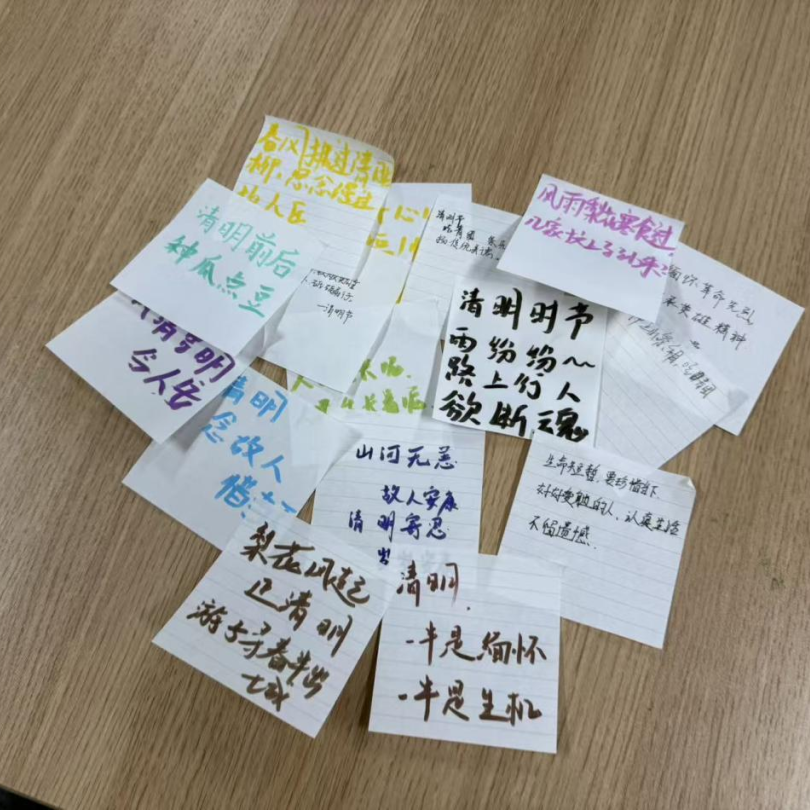 清明,一半是缅怀,一半是生机。本次“忆清明・承文脉・趣寄思”主题活动,以趣味形式解锁传统节日的全新打开方式,既让大家在轻松的氛围中感悟了清明深厚的文化内涵,传承了中华优秀传统文化,也以绿色文明的形式传递了追思怀远的真挚情感。未来,我院也将持续以传统节日为载体,开展更多兼具文化内涵与青春活力的主题活动,引导广大青年在文化传承中坚定理想信念,赓续红色血脉,以昂扬向上的姿态奔赴春日新程。