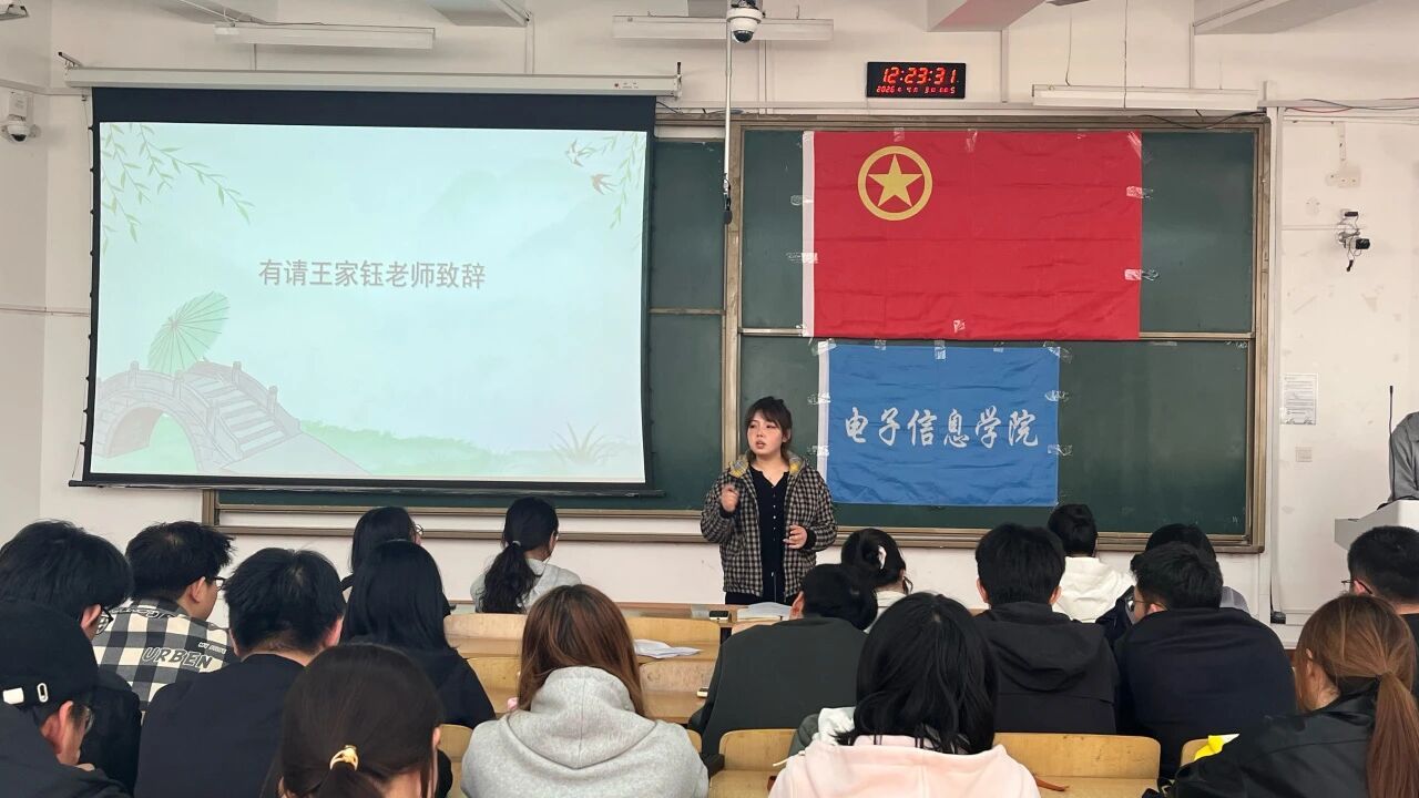 活动中,学院团委书记王家钰老师上台致辞,话语中饱含对革命先烈的深切缅怀,也满载对青年学子的殷切期望,为同学们指明了传承红色精神、砥砺青春前行的方向。通信工程2301班董璇、通信工程2302班陈曦、电子2504班陈逢甘露同学依次带来主题分享,从不同角度讲述英烈故事、抒发青春感悟,让同学们在聆听中读懂信仰的力量,坚定勇毅前行的决心。