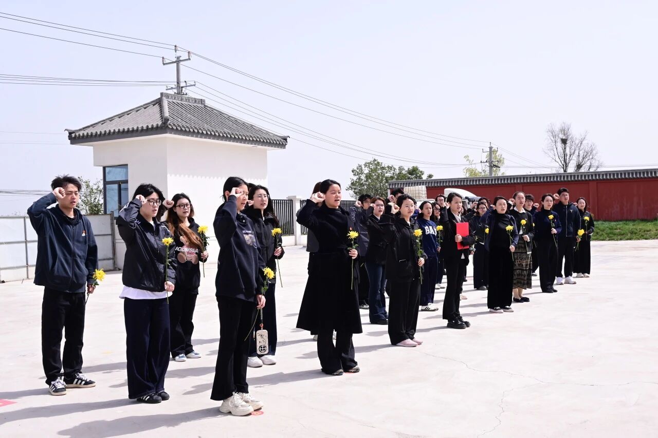 活动现场,气氛庄严肃穆。全体师生整齐列队,在革命烈士纪念碑前垂首默哀,静默中,是对英烈们无畏牺牲的深切缅怀。随后,学生代表和老师神情肃穆,手持鲜花,缓缓走向纪念碑,将鲜花轻轻放置,全体学生深深鞠躬,表达对先烈们的崇高敬意。
