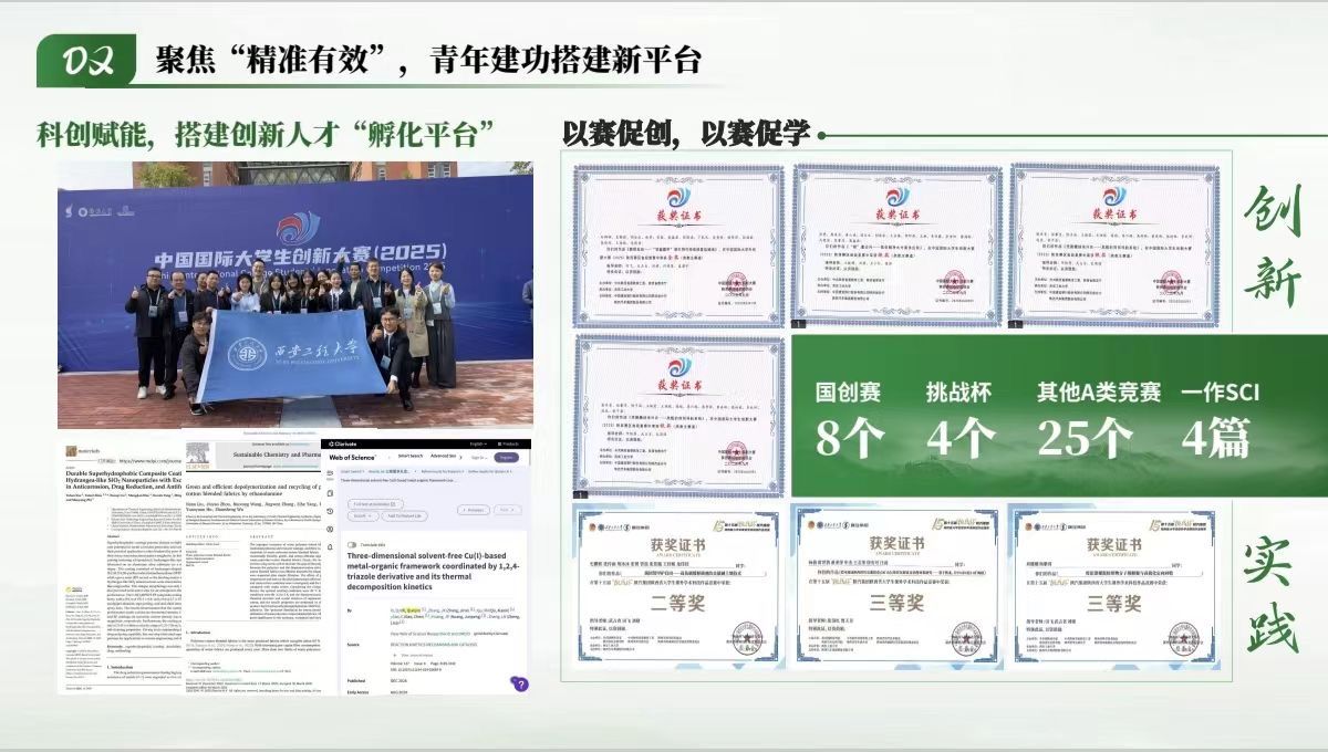 二是骨干带动,打造榜样引领“多平台”。党支部选派优秀学生党员担任功能性团支部支委,参与团支部活动策划、理论学习指导、实践项目带队,形成“党员带团员”的梯次培养格局。今年,湖南卫视、呼和浩特卫视、陕西卫视先后对我院学子创新实践进行专题报道。功能性团支部副书记刘娜娜,作为全省大学生志愿者唯一代表,在陕西省2025年六五环境日省级主场活动上作主题宣讲。