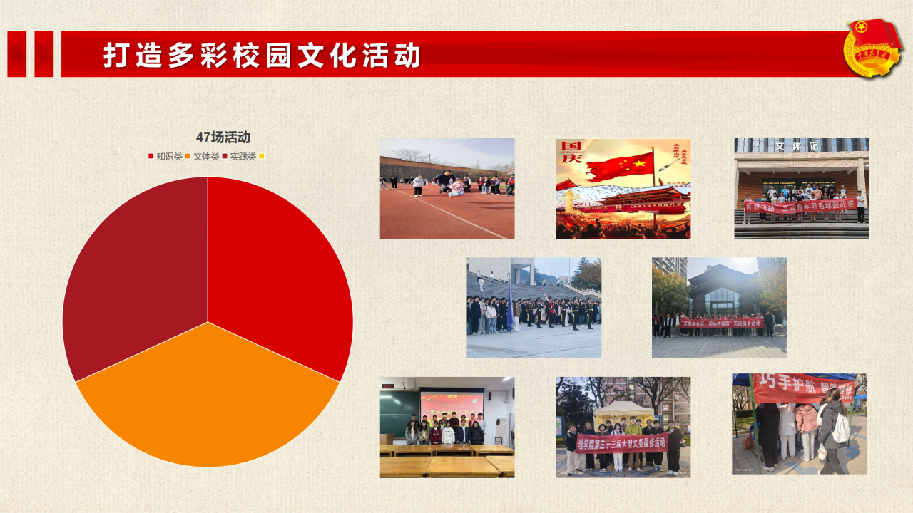 全年统筹开展47场覆盖知识、文体、实践等多维度的校园文化活动,包括“燃五四薪火·铸青春华章”知识竞赛暨“青春为中国式现代化挺膺担当”主题宣讲、数学建模竞赛、“萌芽杯”辩论赛、团知识竞赛、师生篮球赛、冬日长跑等,既丰富了学生课余生活,又有效提升了理工科学生综合素养。