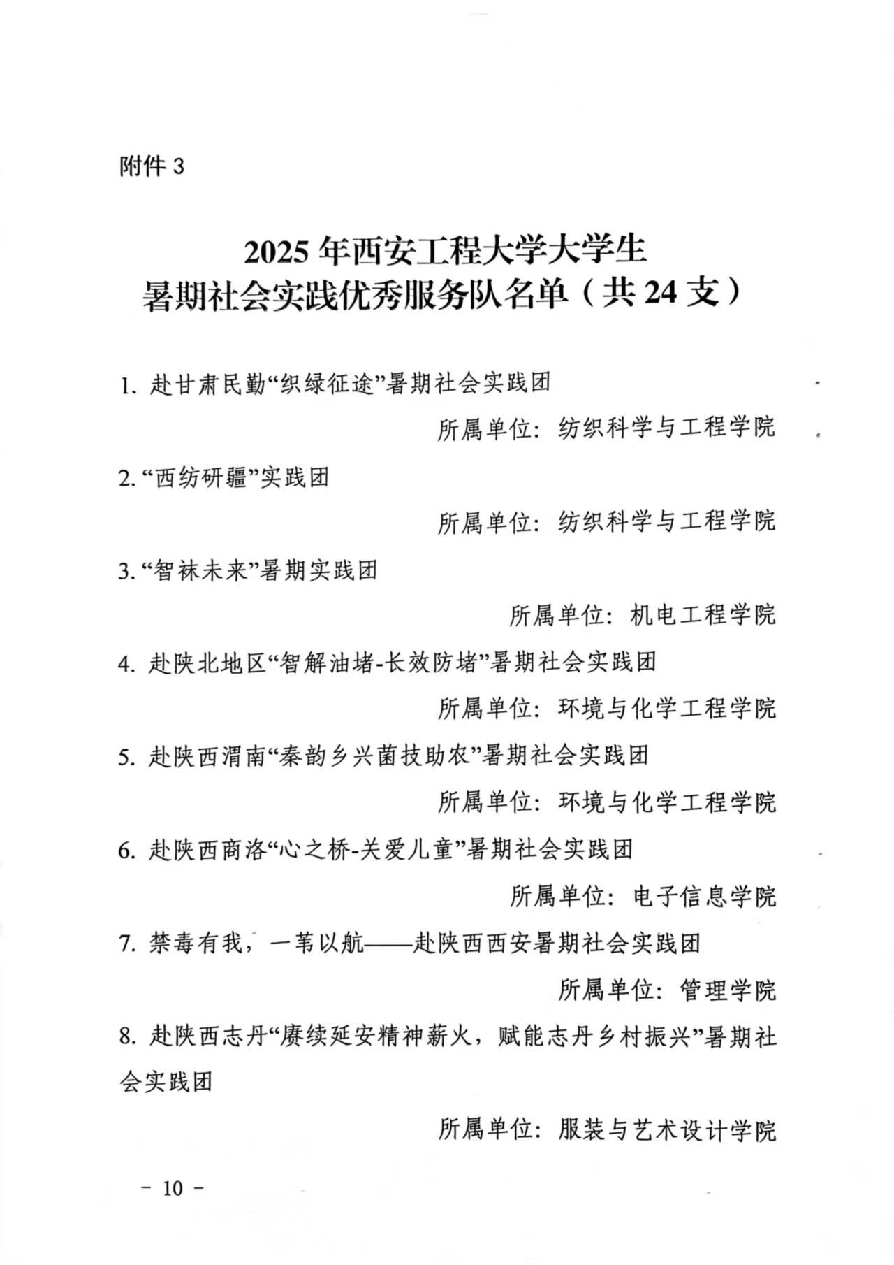 3. 2025年西安工程大学大学生暑期社会实践优秀服务队名单(共24支)