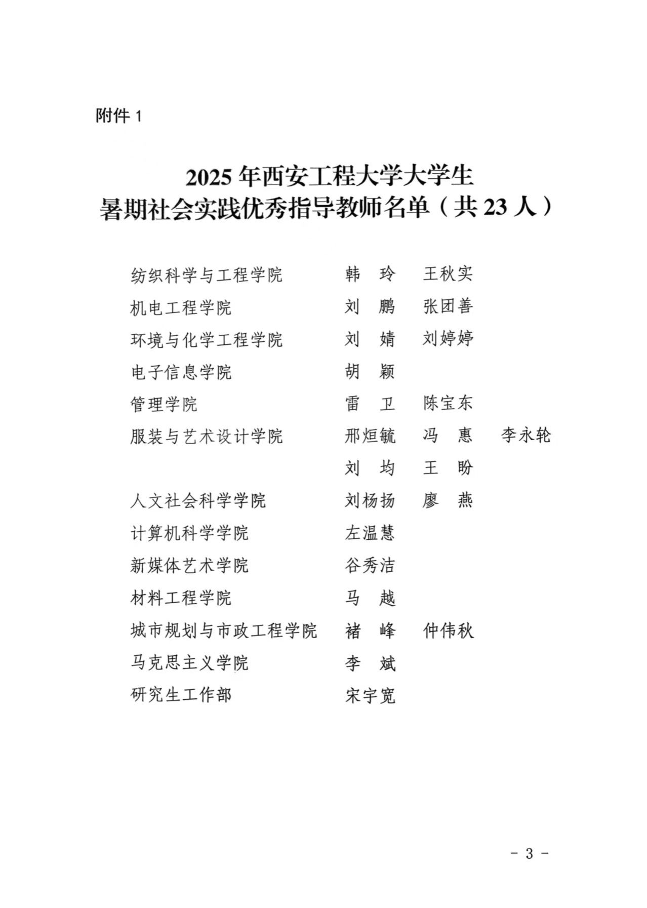 1. 2025年西安工程大学大学生暑期社会实践优秀指导教师名单(共23人)