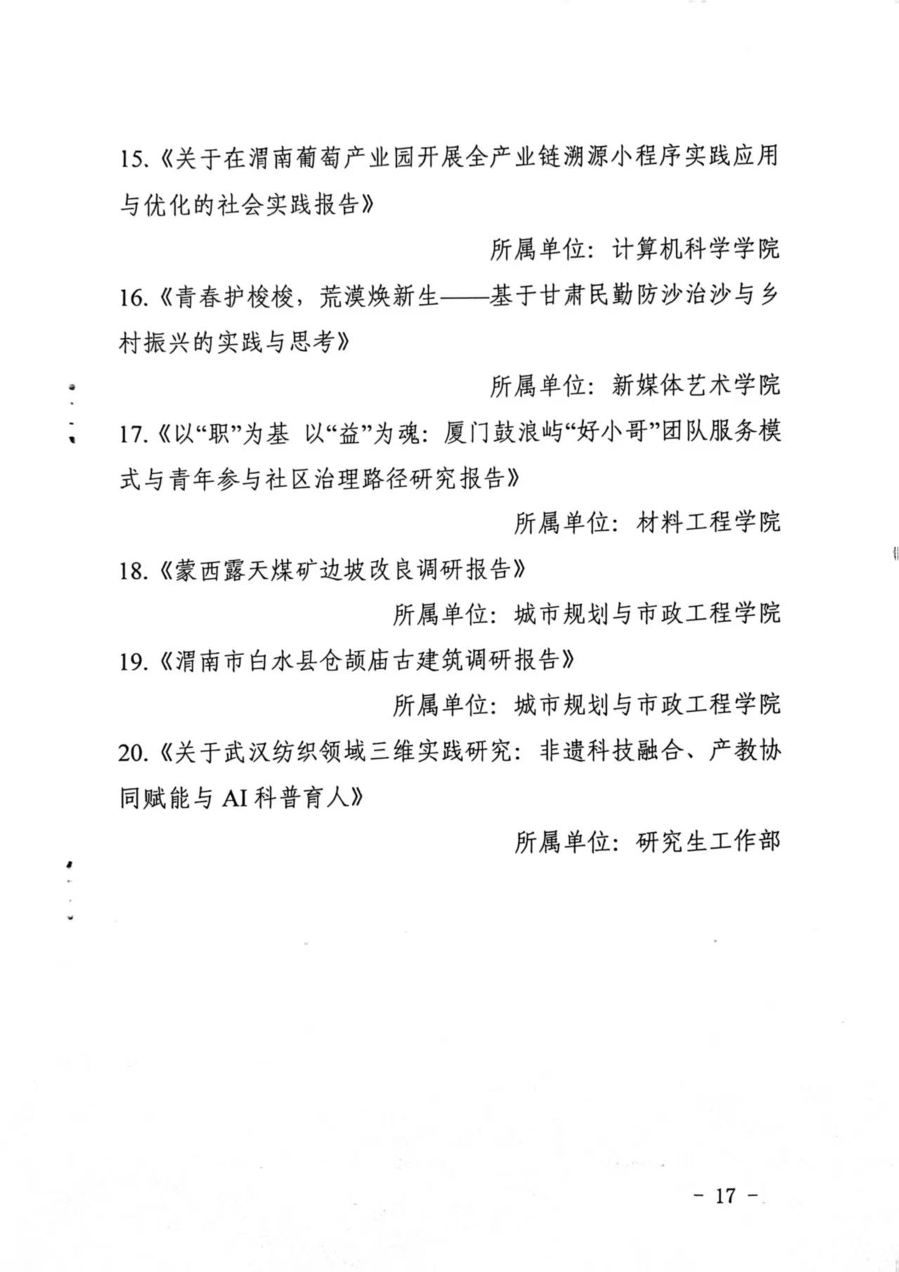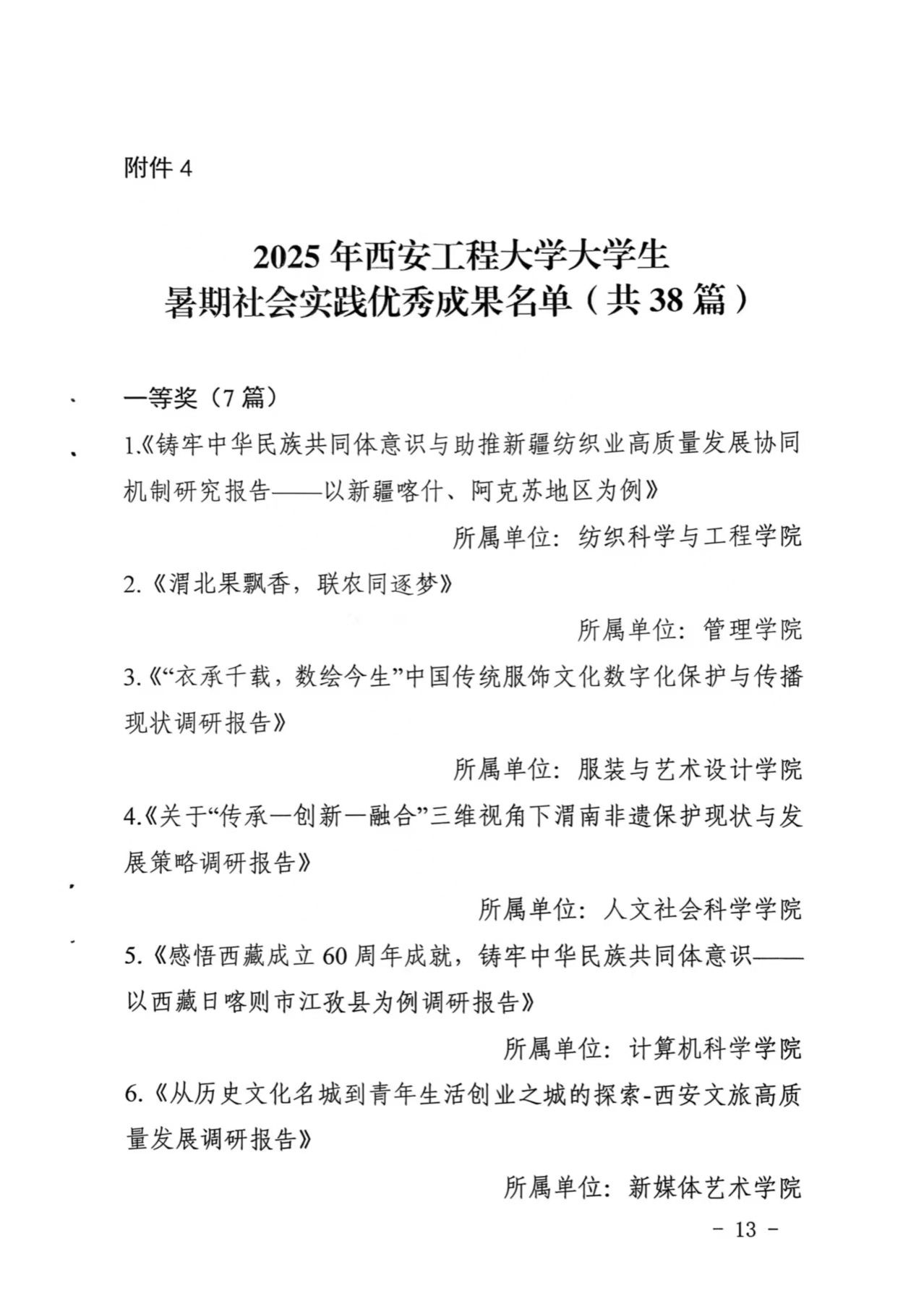 4. 2025年西安工程大学大学生暑期社会实践优秀成果名单(共38篇)
