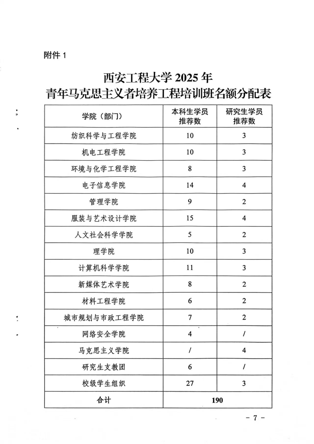1. 西安工程大学2025年青年马克思主义者培养工程培训班名额分配表