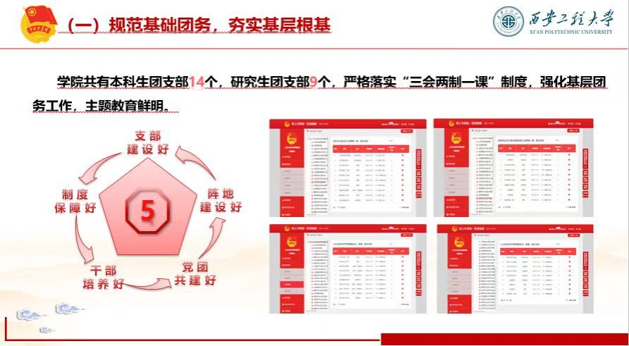 学院现有本、硕学生团支部23个。严格落实“三会两制一课”制度,将智慧团建系统操作规范、内容完善作为团支部对标定级重要标准,实现专题教育学习23个团支部100%覆盖。高效完成新生团员注册、档案核查接收及毕业生团员学社衔接、升学衔接工作,其中学社衔接率97.5%、升学衔接率100%。